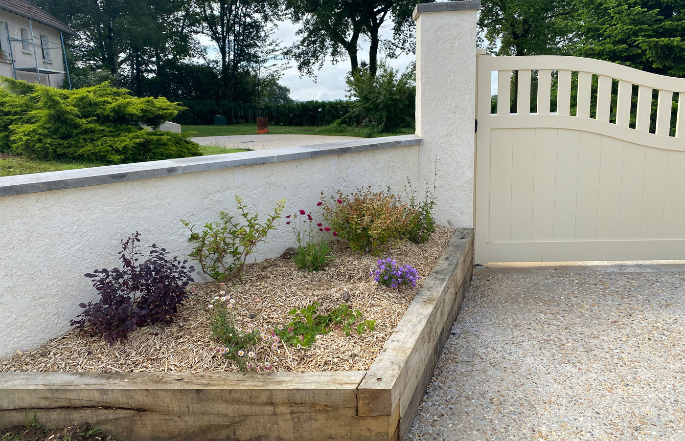 - La création de bassins et de massifs avec paillage minéral ou végétal
